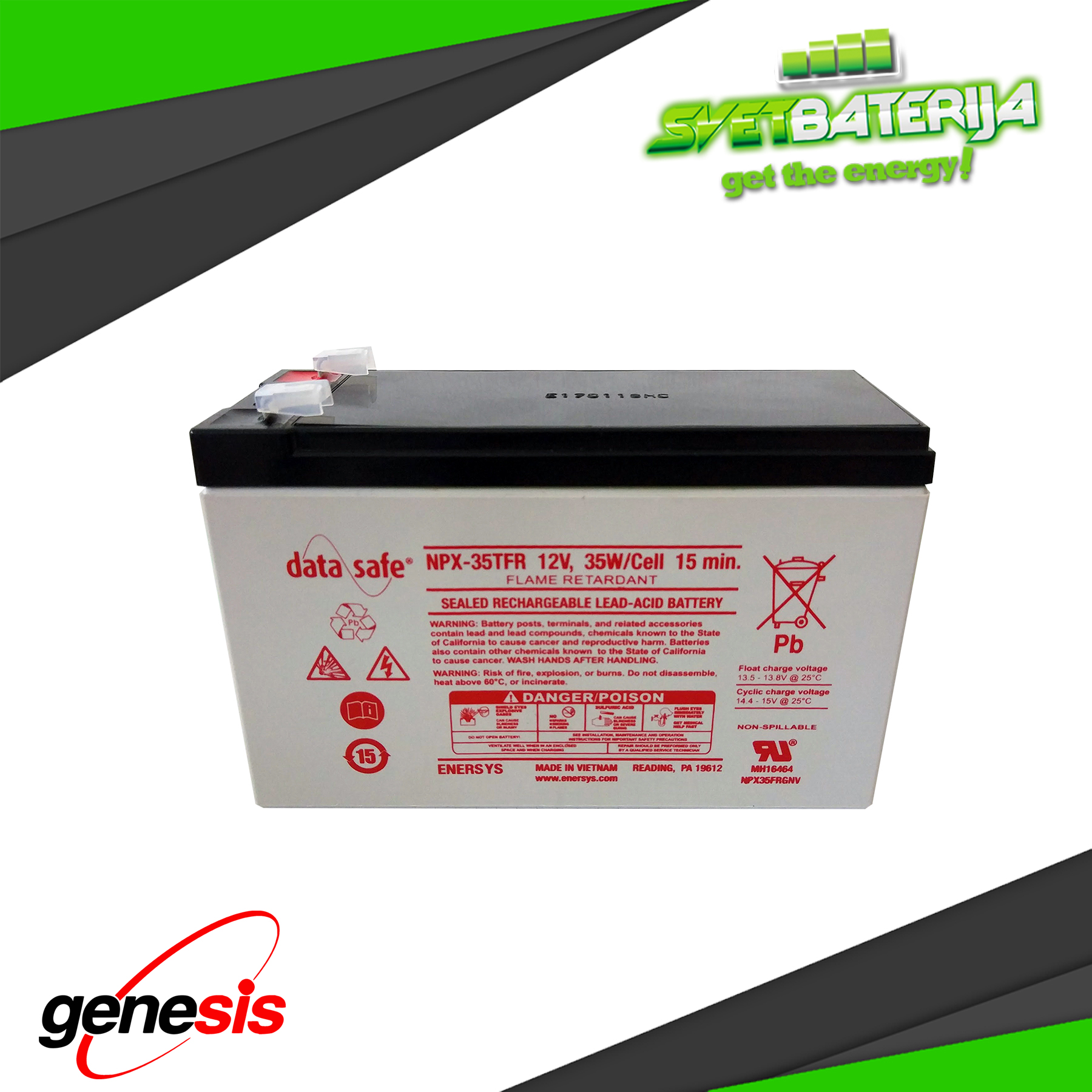 Genesis | 12V 8Ah GENESIS DataSafe NPX35-12 NPX35-12FR ENERSYS Olovna Baterija