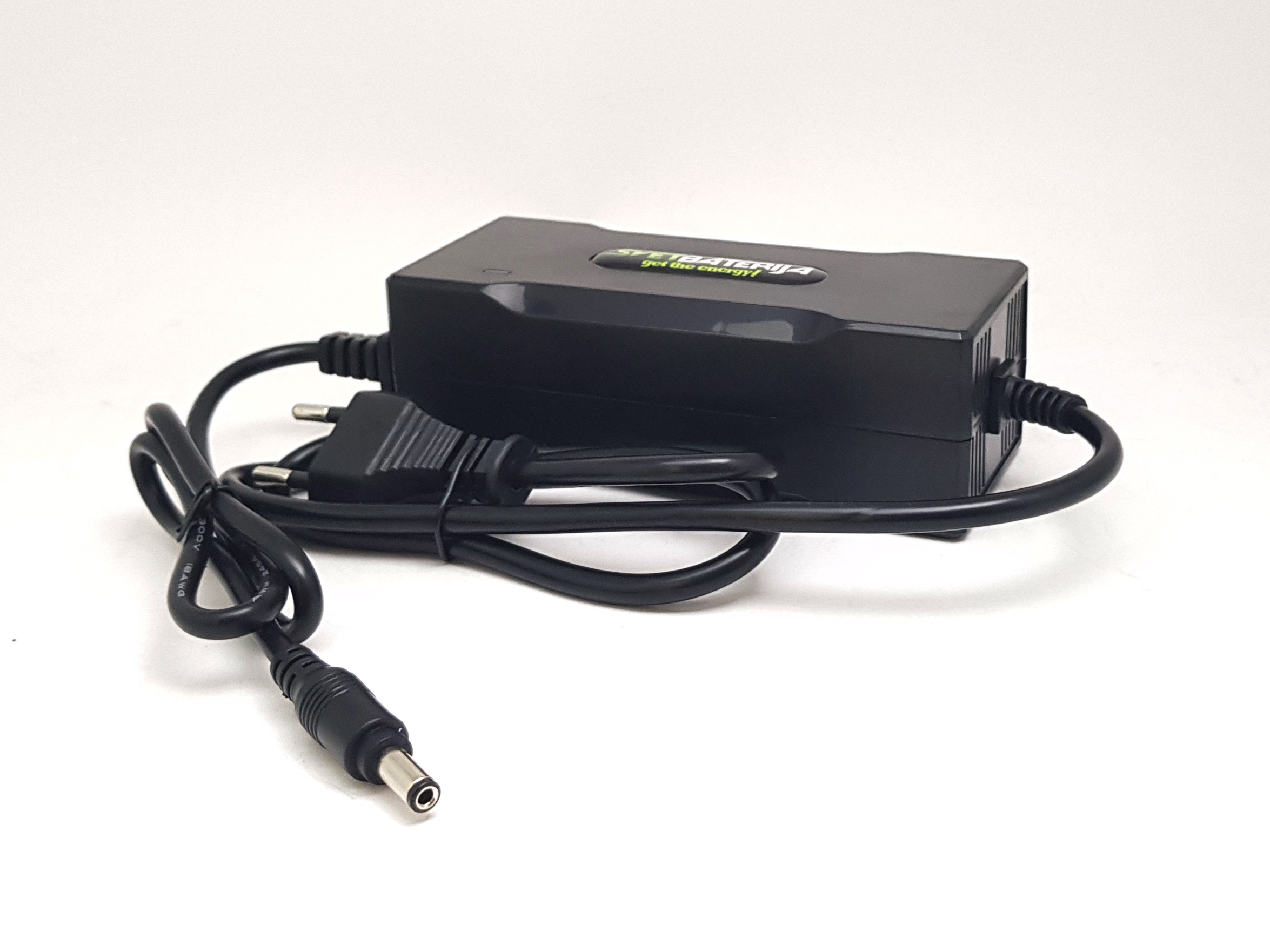 24V 5A li-ion punjač za električni skuter, električni bicikli, ebike i druga električna vozila slične namene koja koriste 18650 3.6V vezane serijski sa ukupnim nominalnim naponom od 25.2V. Punjač poseduje zaštitu od kratkog spoja, obrnutog polariteta i prepunjavanja, takođe poseduje ventilator za hlađenje komponenti prilikom punjenja, što je sigurna zaštita od pregrevanja!