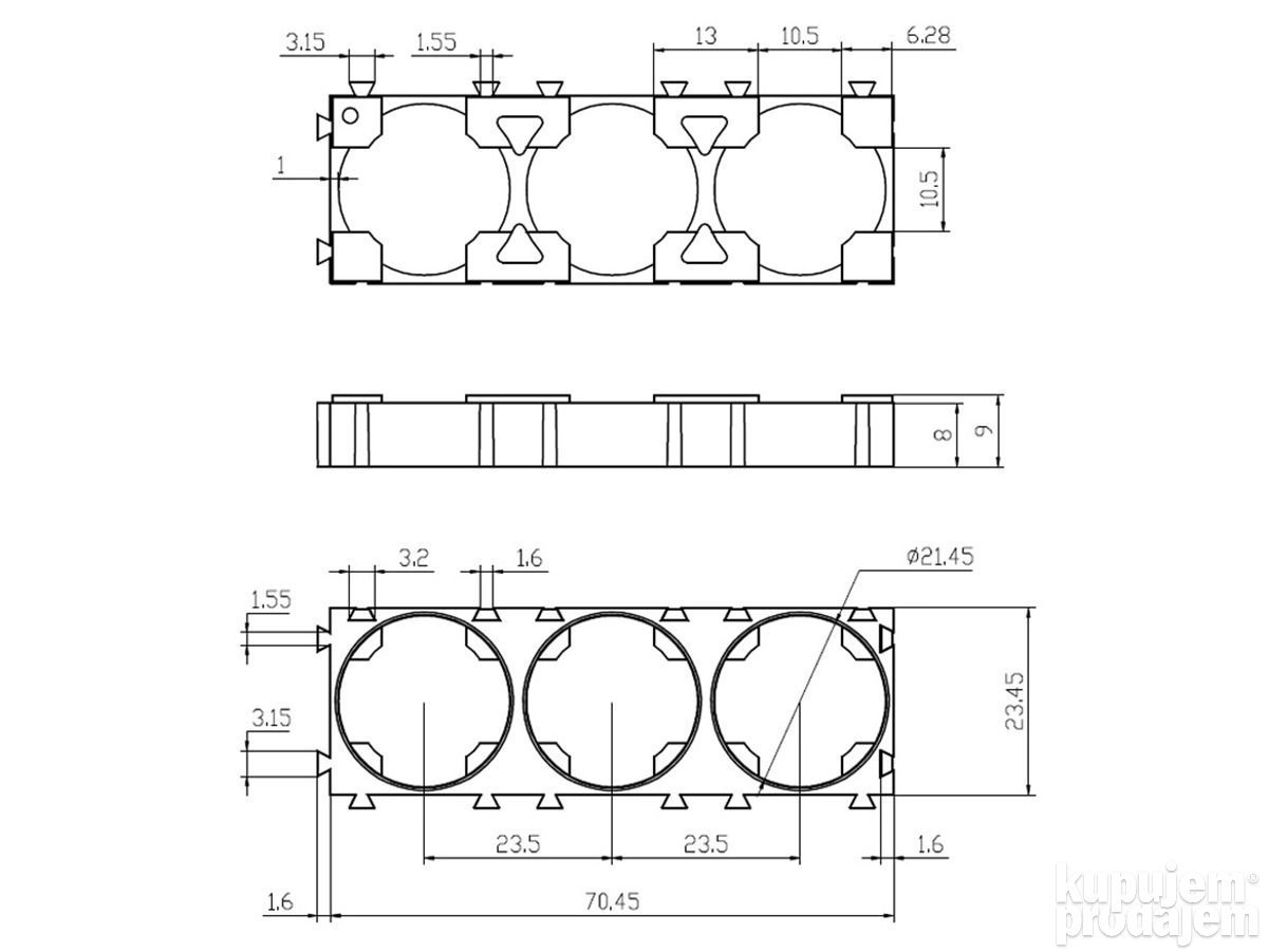 Kirano | 3P Držač 21700 Nosač Li-Ion Litijum Baterija Separator