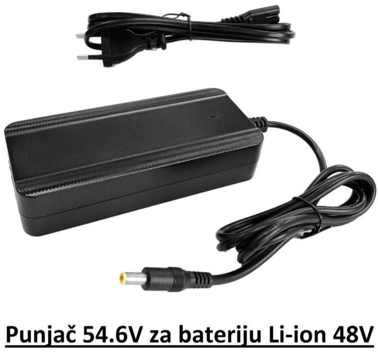 Lithium-ion punjač za električni bicikli, električni skuter, trotinet, longboard i druga električna vozila koja sadrže 13S 48V litijum jon baterije. Punjač poseduje zaštitu od kratkog spoja i prepunjavanja.