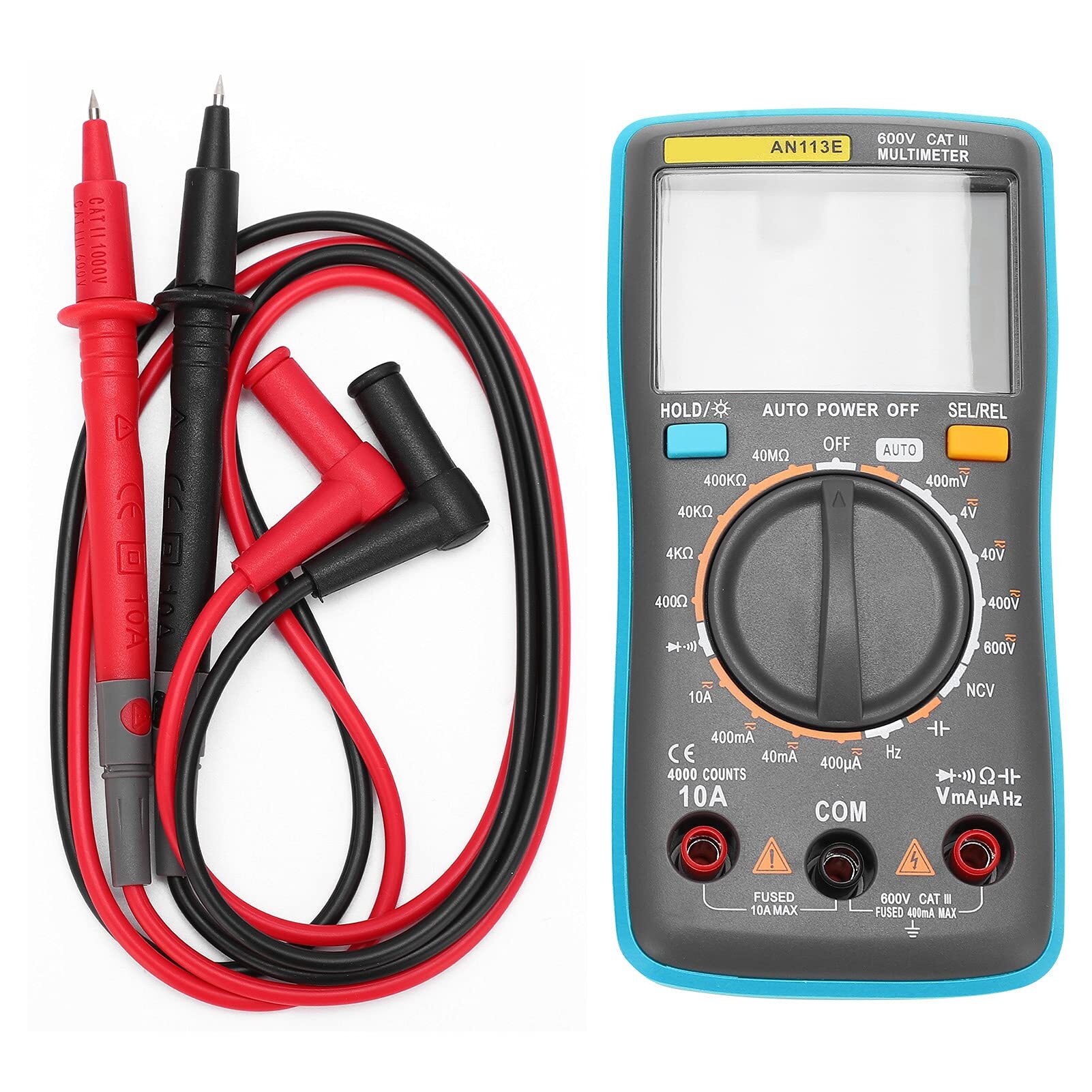 ANENG AN113E digitalni unimer multimetar sa automatski rasponom merenja AC/DC napona, AC/DC struje, otpora i farada a pored toga podržava NCV beskontaktnu detekciju napona u kablu ili zidu, test diode, privremeno zadržavanje podataka, automatsko gašenje, zujalica i pozadinsko osvetljenje.