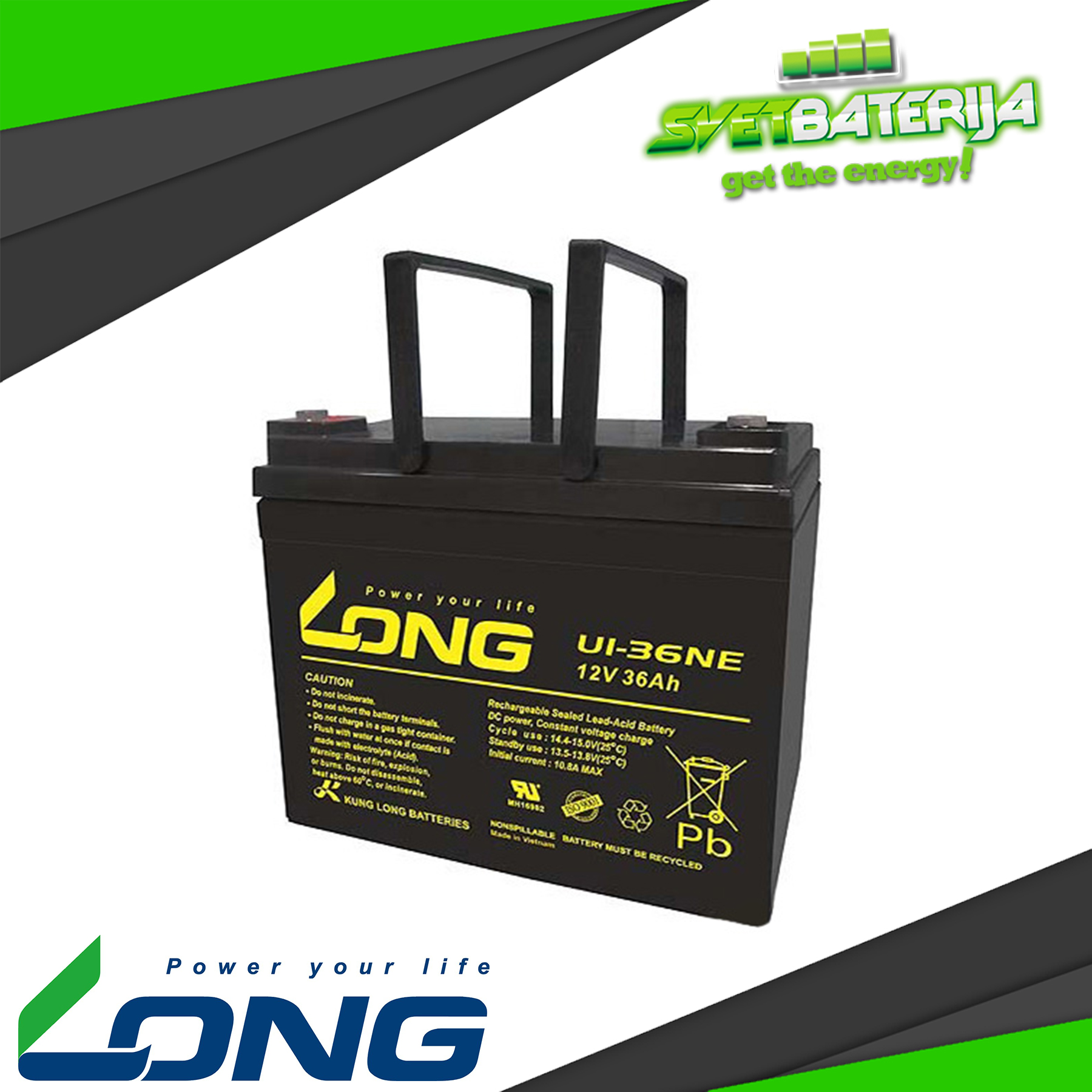 Kompanija Kung Long Batteries se bavi proizvodnjom i prodajom olovnih baterija na Tajvanu. Njihovi proizvodi obuhvataju AGM i Gel baterije, kao i druge tipove duboko cikličnih baterija. Long baterija 12V 36Ah pod oznakom U1-36NE je specijalna baterija dimenzija 193x126x159 (168 totalna visina) mm, koja za razliku od drugih baterija ovog napona i kapaciteta može da obezbedi veće struje pražnjenja. Idealna za elekrtična vozila kao i tipove invalidskih kolica. Ova baterija obezbeđuje i dug životni vek u uređajima kao što su alarmne centrale, reflektori, dečije igračke, prskalice, kosačice, lampe i druge uređaje gde se traži suva baterija sličnih dimenzija ili karakteristika.