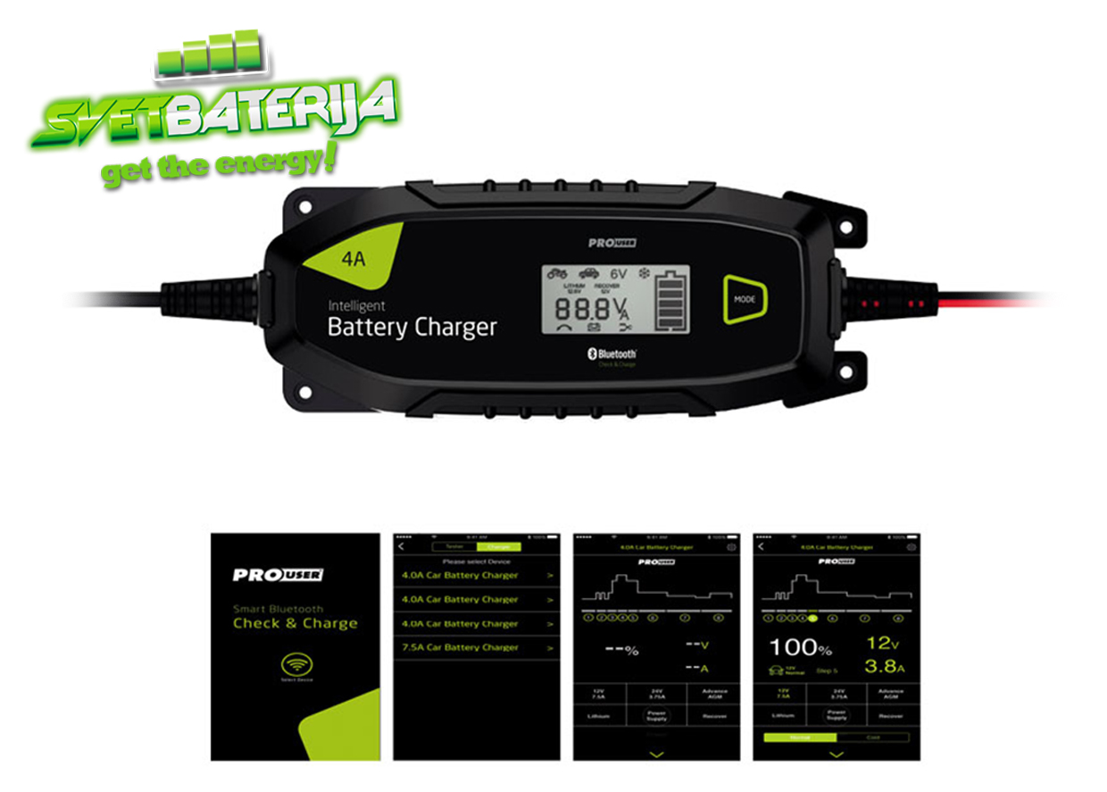 Inteligentan automatski punjač akumulatora sa Bluetooth konekcijom za punjenje svih vrsta akumulatora sa mogućnošću praćenja rada punjača preko "Check & Charge" interfejsa. Mogućnost punjenja akumulatora kapaciteta 1,2Ah do 120Ah - 12V.