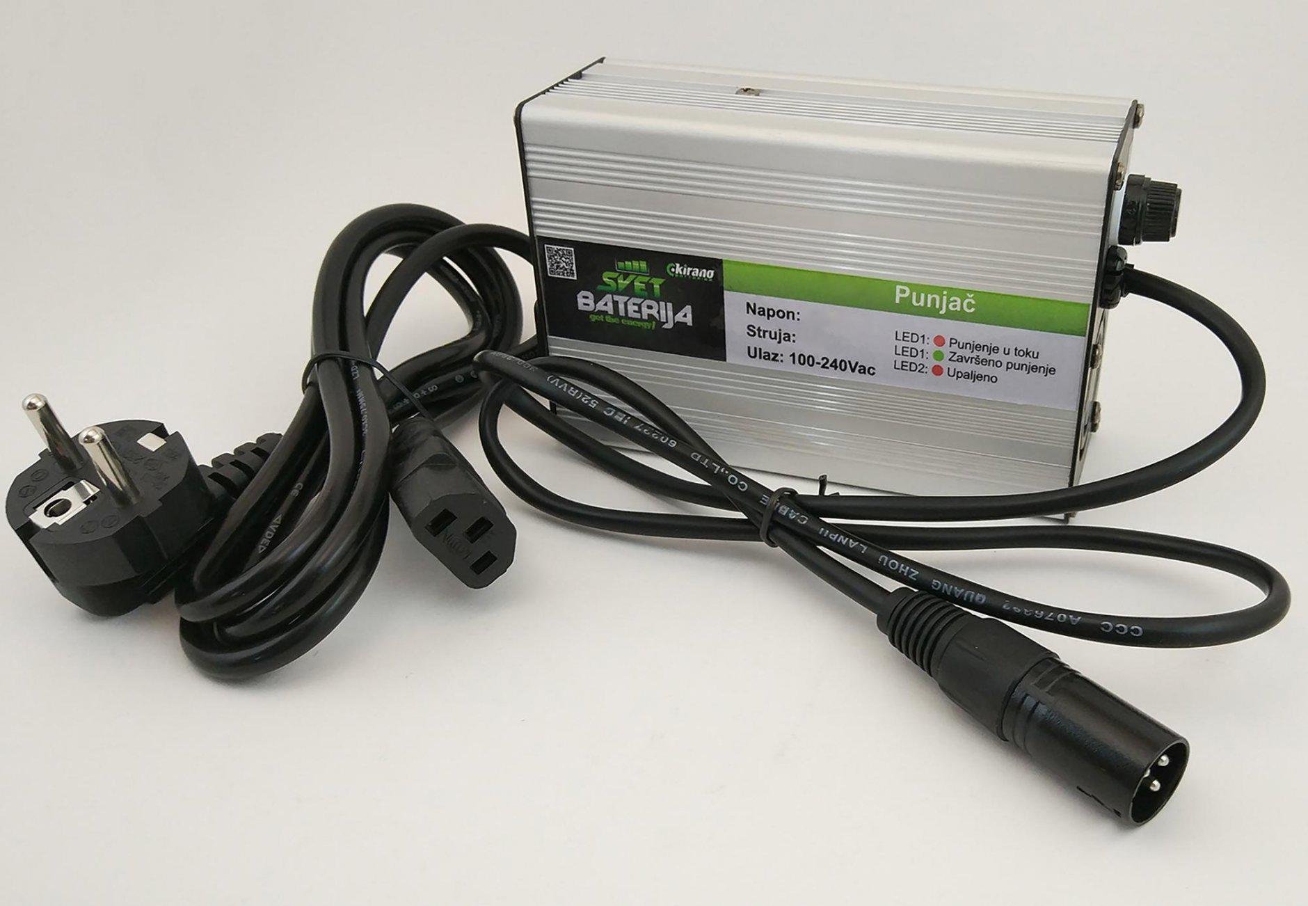 Punjač za električna vozila, bicikle, skutere, longboardove i druga električna vozila koja koriste 72.5V 3A struju. Opremljen ventilatorom za hlađenje. Pruža sigurnu zaštitu od pregrevanja tokom punjenja, osiguravajući optimalne uslove za duži vek trajanja baterija.